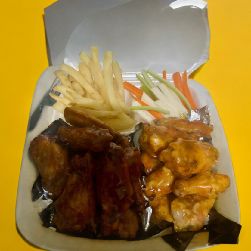 Orden de 12 boneless, zanahoria, apio, aderezos y orden de papas.