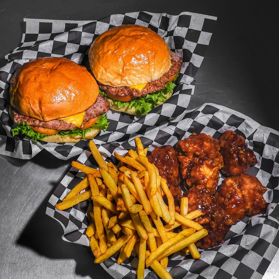 2 Hamburguesas sencillas, 300G de bonless, 400 G. De papas