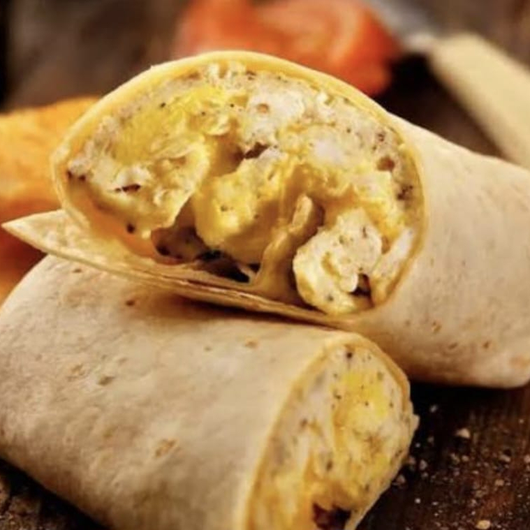 Tortilla de harina con frijol, queso asado, chorizo con papas, machaca y huevo.