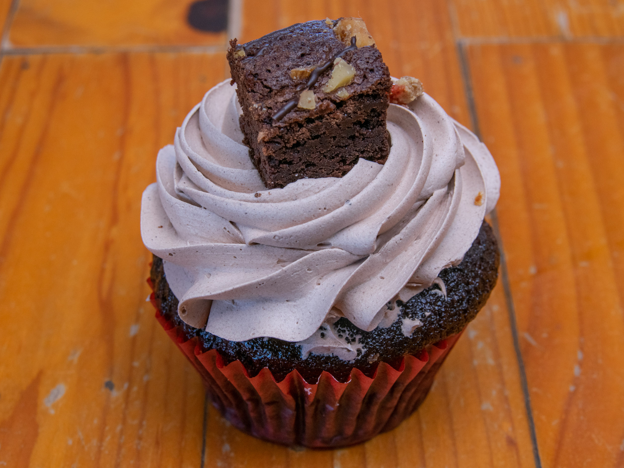 Mini pastelito de chocolate con crema de cachuate caramelo y trozos de chocolate snickers