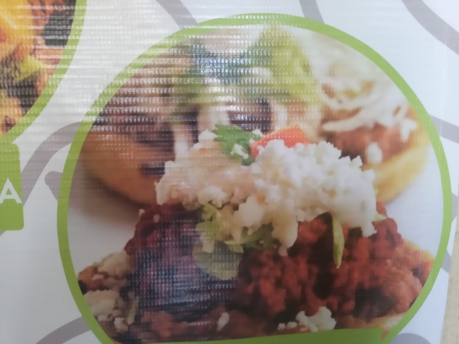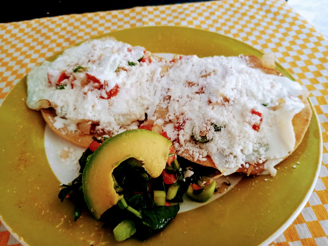 3 piezas de pollo o carne de res desebrada lechuga,tómate,aguacate,cebolla curtida,queso cotija