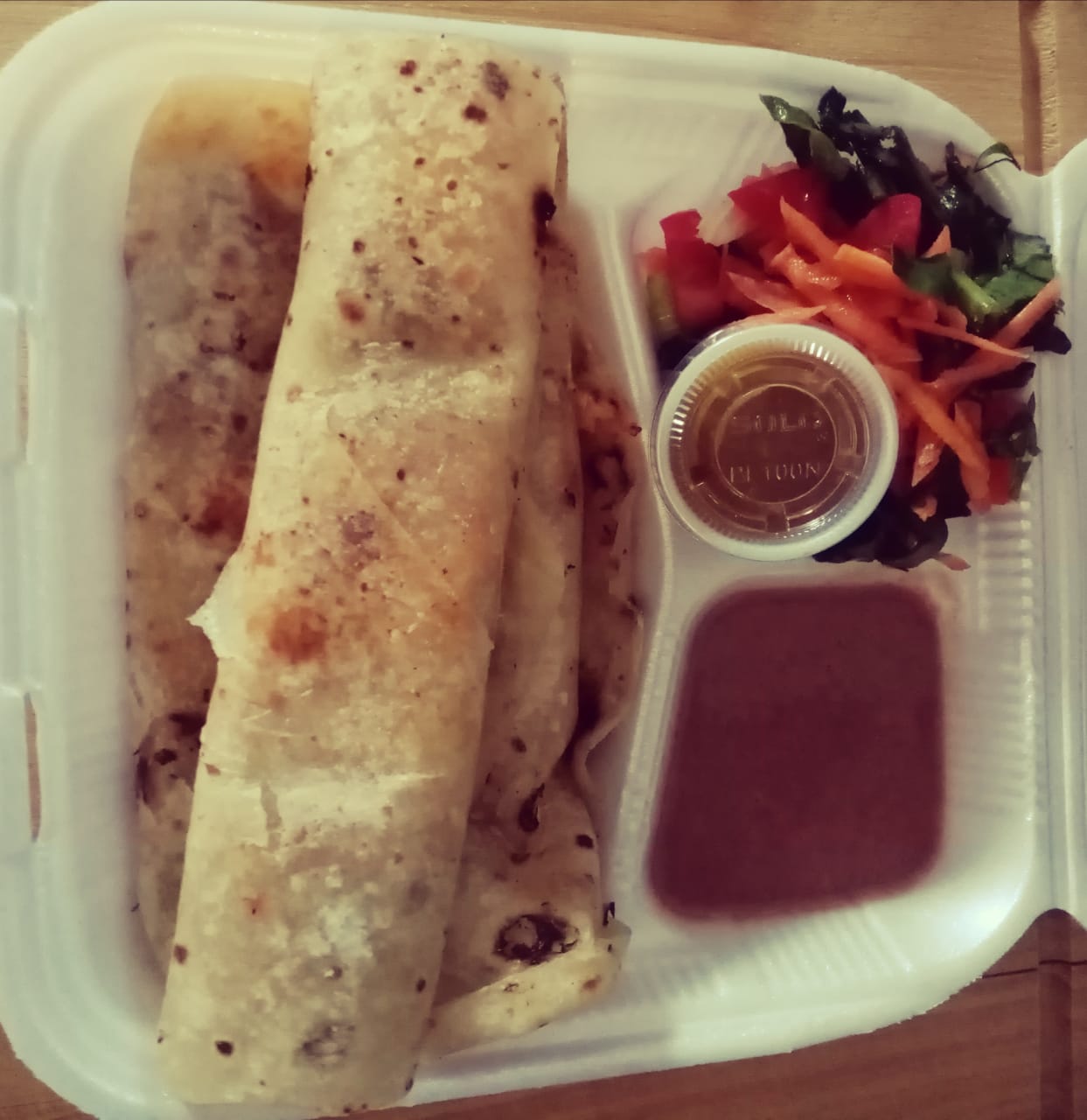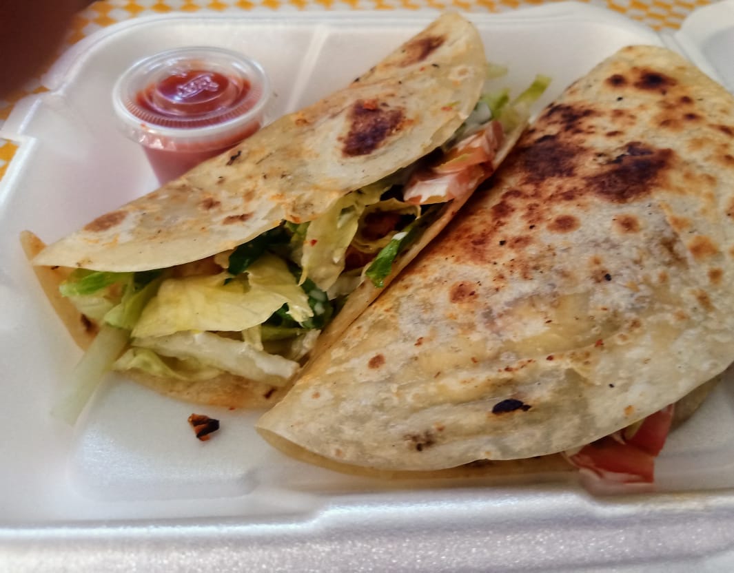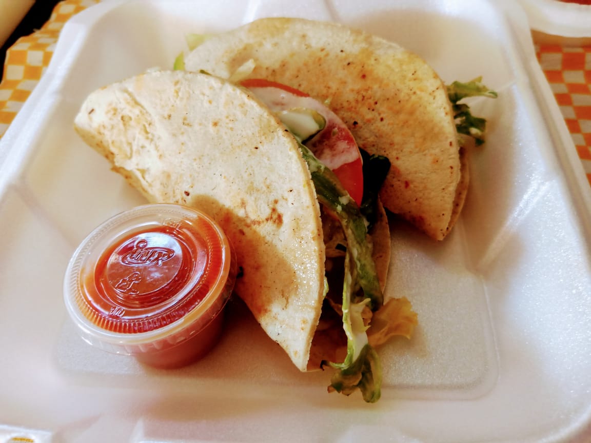 3 Piezas de harina o maíz, acompañadas de ensalada verde, frijol y salsa casera.