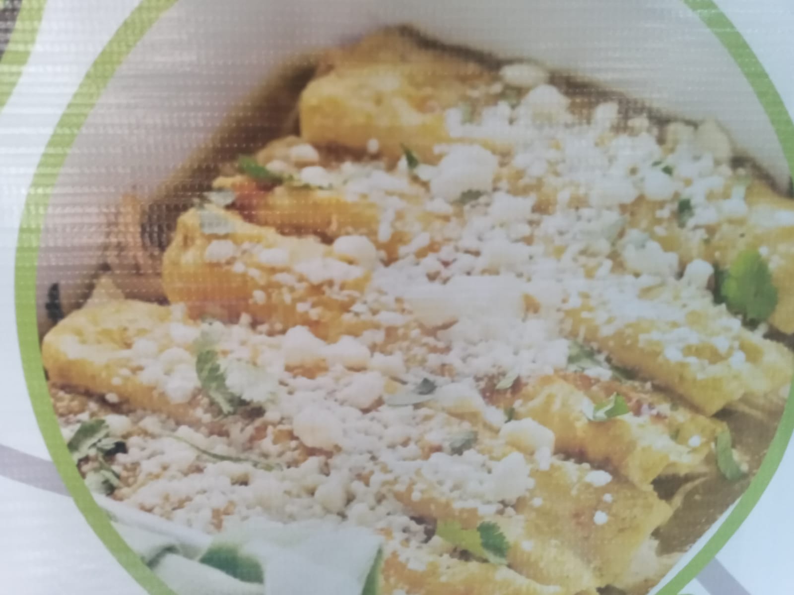 3 piezas bañadas en salsa verde o roja ,arriba queso cotija Acompañado de ensalada verde o frijol