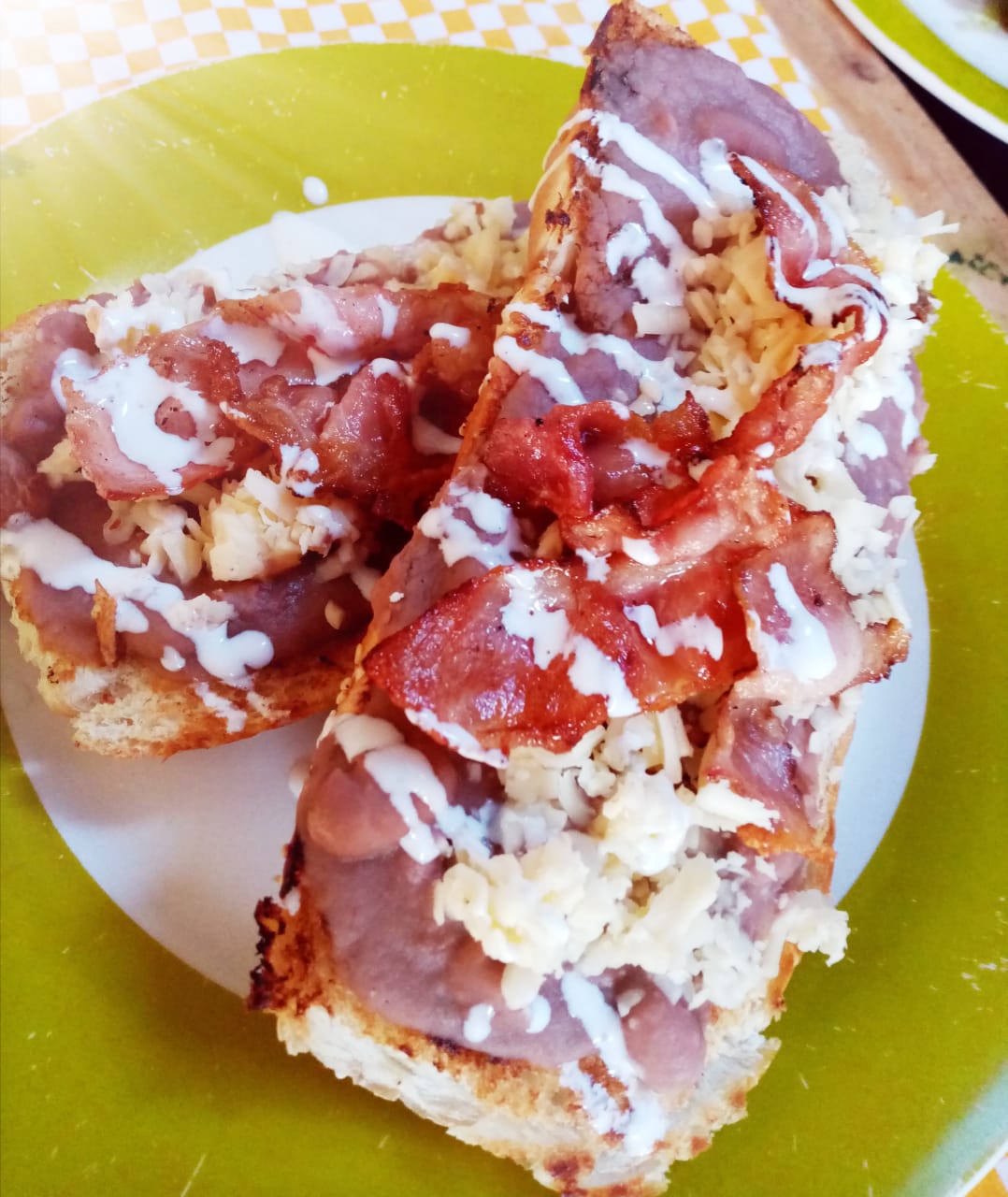Molletes con tocino.