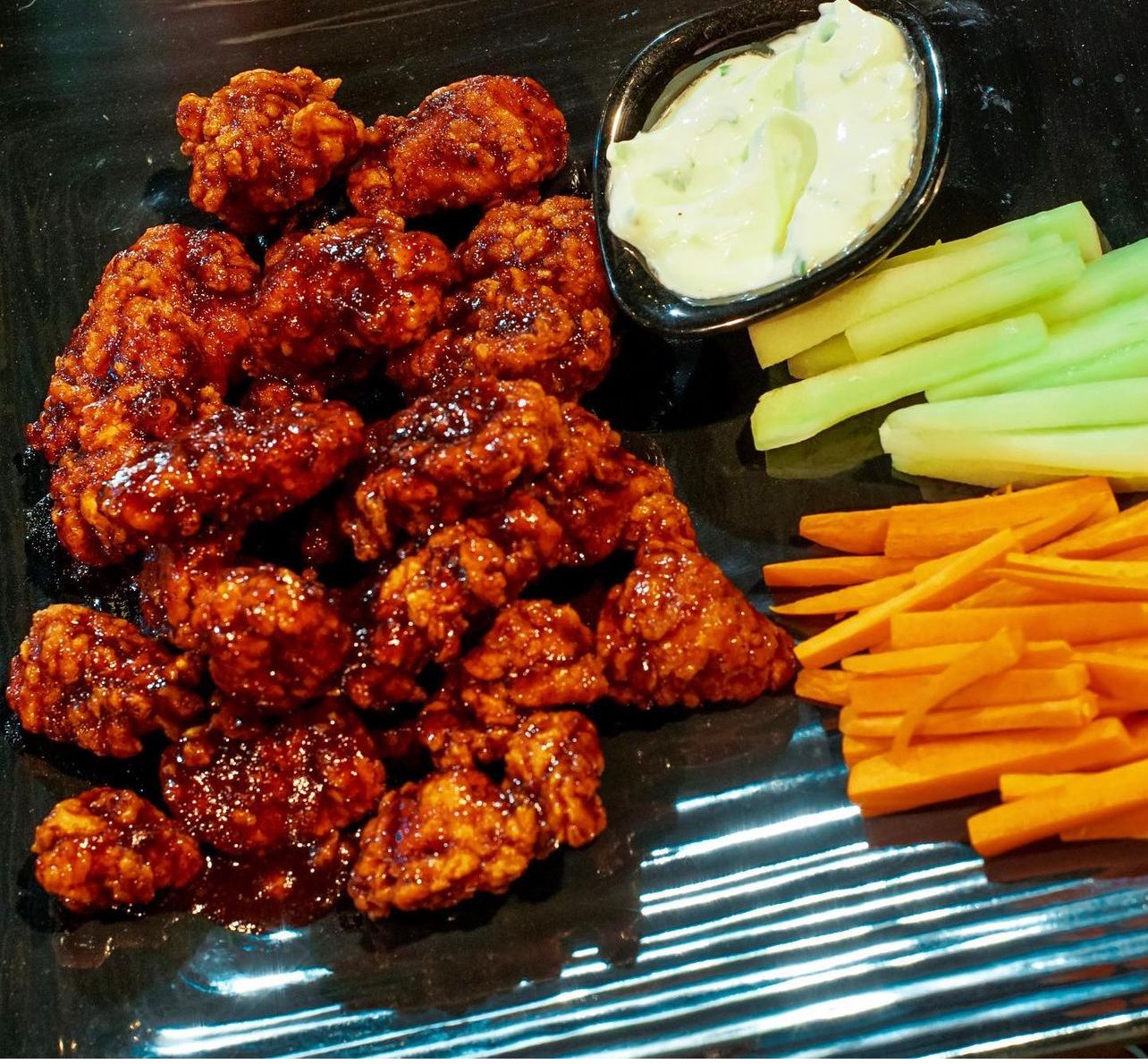 500gr de boneless con 4 salsas a escoger acompañado de vegetales y aderezo