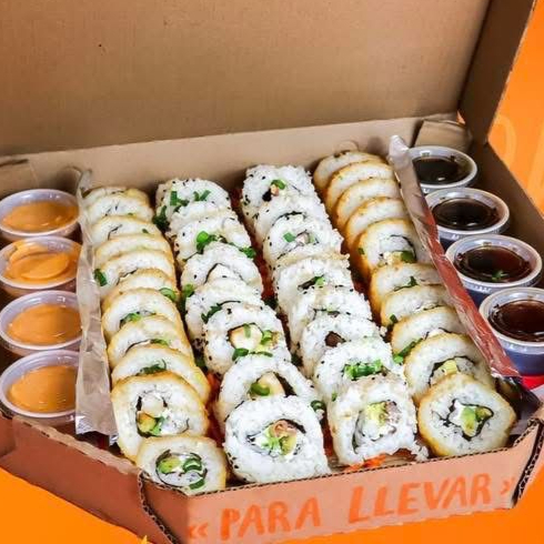 12 alitas + 2 rollos de sushi 1 proteina + papas a la francesa + 2 aderezos + 2 soyas + 2 chiles preparados