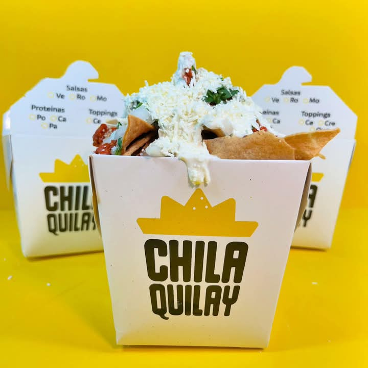 Totopo casero, proteina de pollo, bañado en salsa roja, acompañado de Crema, Queso, Cebolla y Cilantro.
