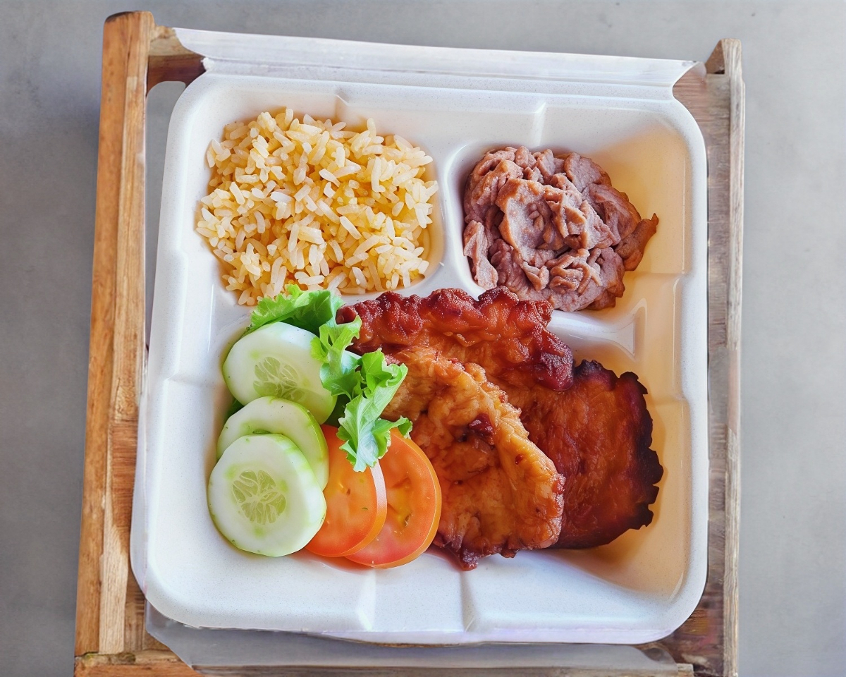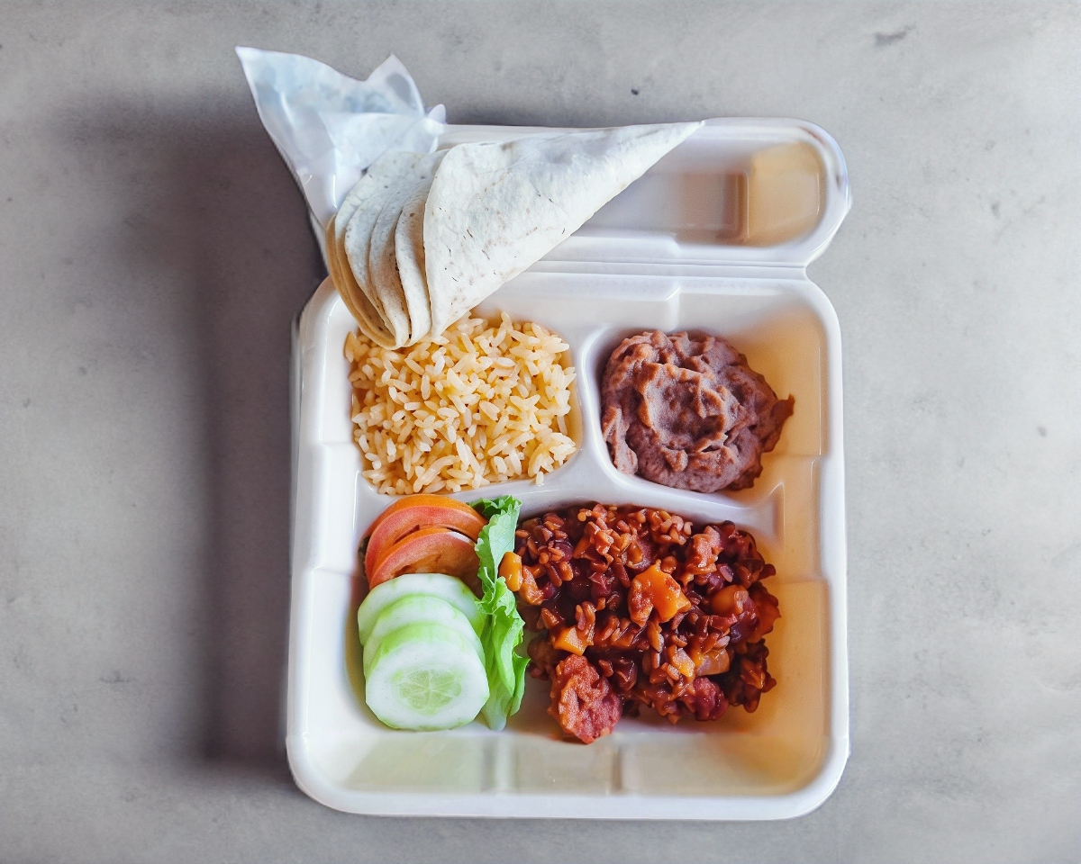 Platillo Milanesa de Pollo empanizada (100grs), Porcion de Arroz, Frijoles y 4 Tortillas de Maiz