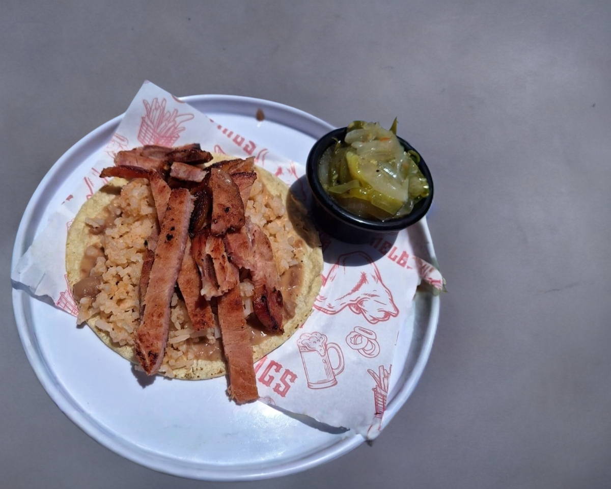Taco de Chuleta ahumada con Arroz y frijoles