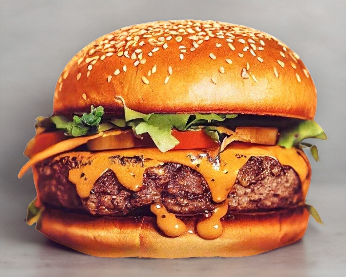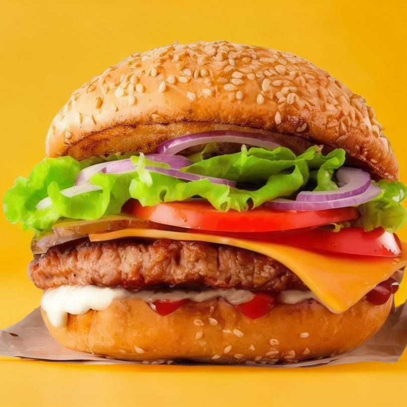 Carne de Res (150gr), Queso Amarillo, Lechuga, Jitomate y Cebolla