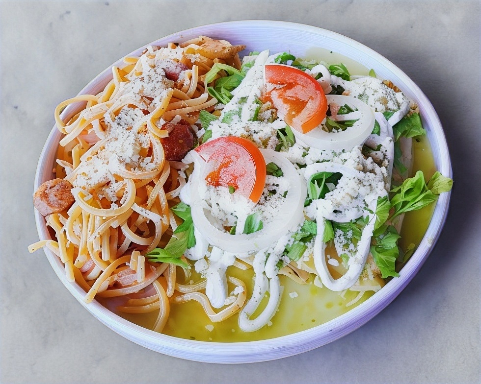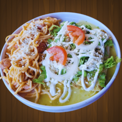 Enchiladas verdes con Pollo Acompañadas Espaguetti