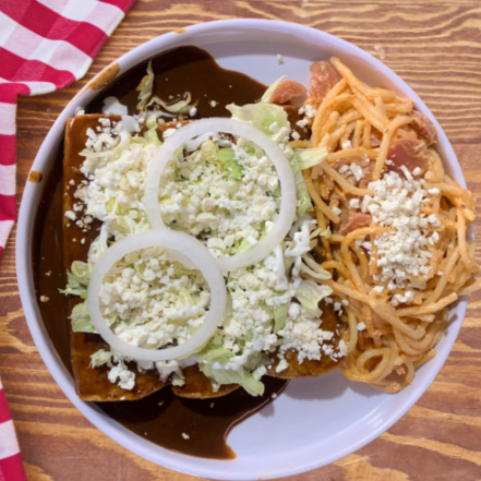 Enchiladas de Mole Rellenas de Pollo Con Arroz