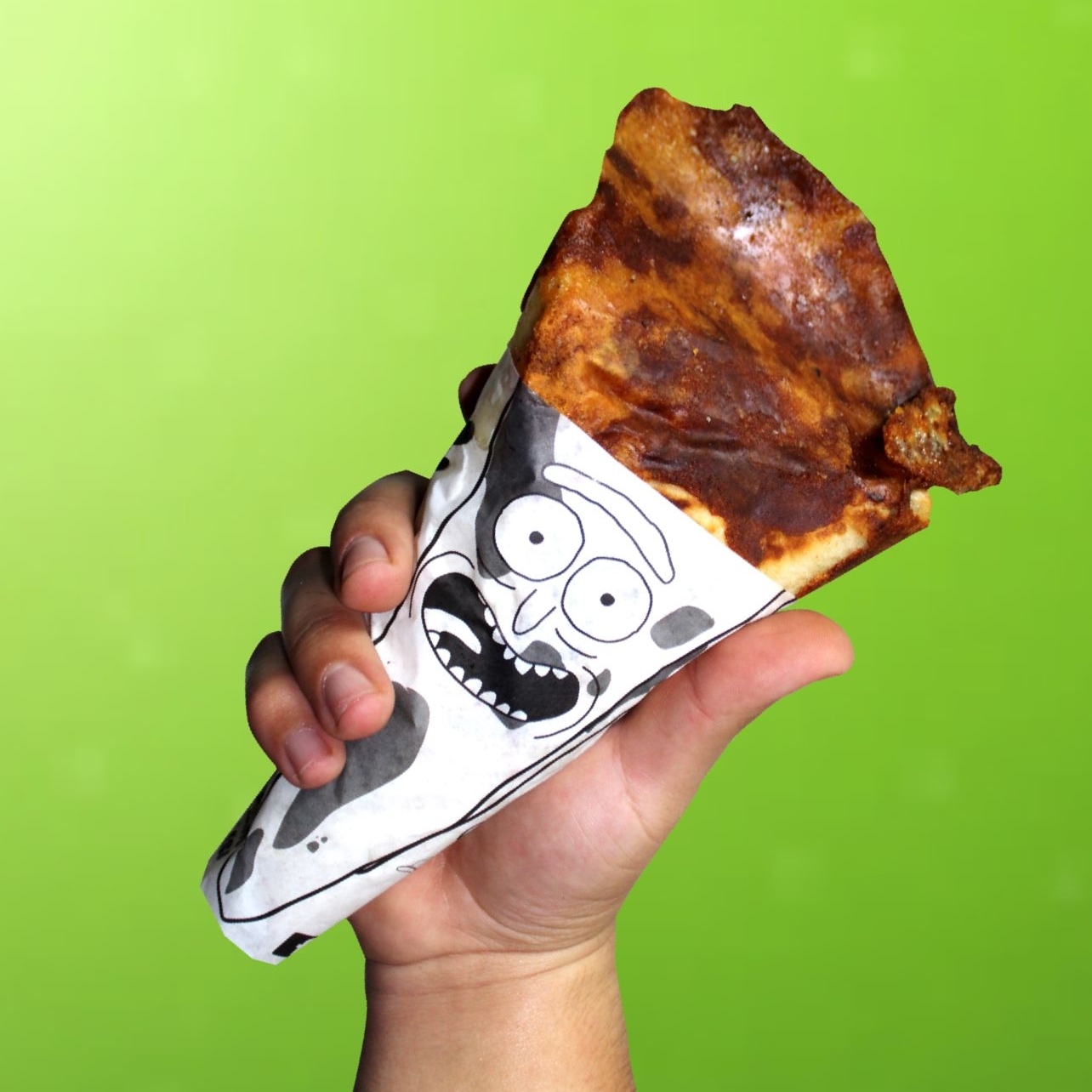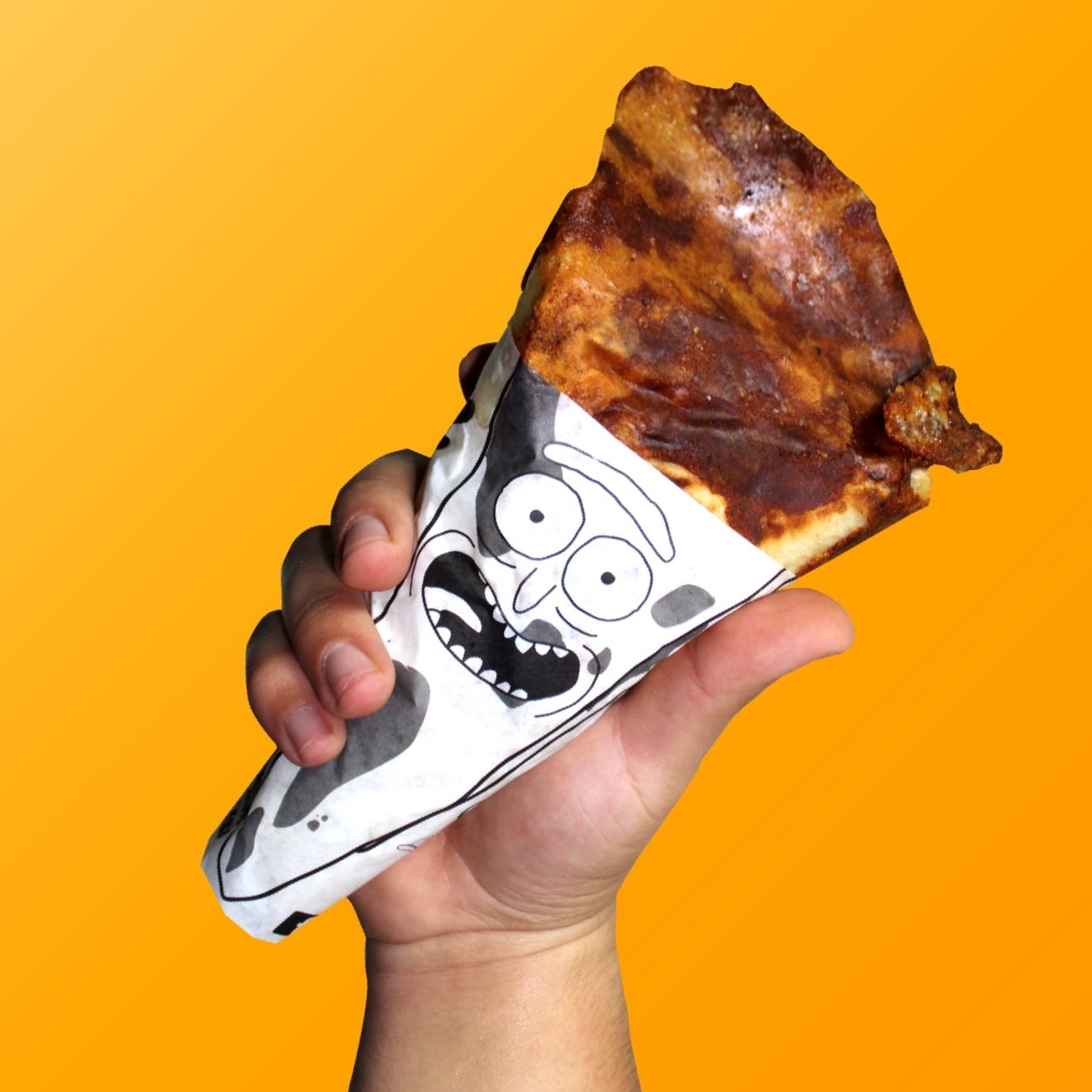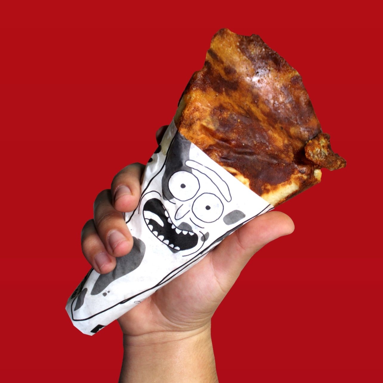 Un cono de 20 cm de pan plano relleno de queso mozzarella, queso crema, chédar, pepperoni, champiñón, sellado con una costra de queso a la plancha con un postre en la punta de queso crema y chocolate un cono único en La Paz BCS