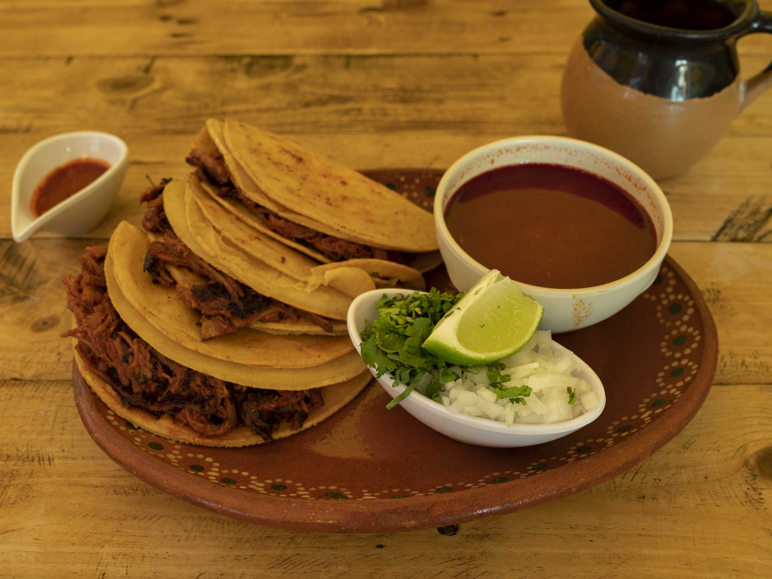 En tortilla de maíz doraditos acompañados de cebolla, cilantro y limón (incluye salsa de chile de árbol).