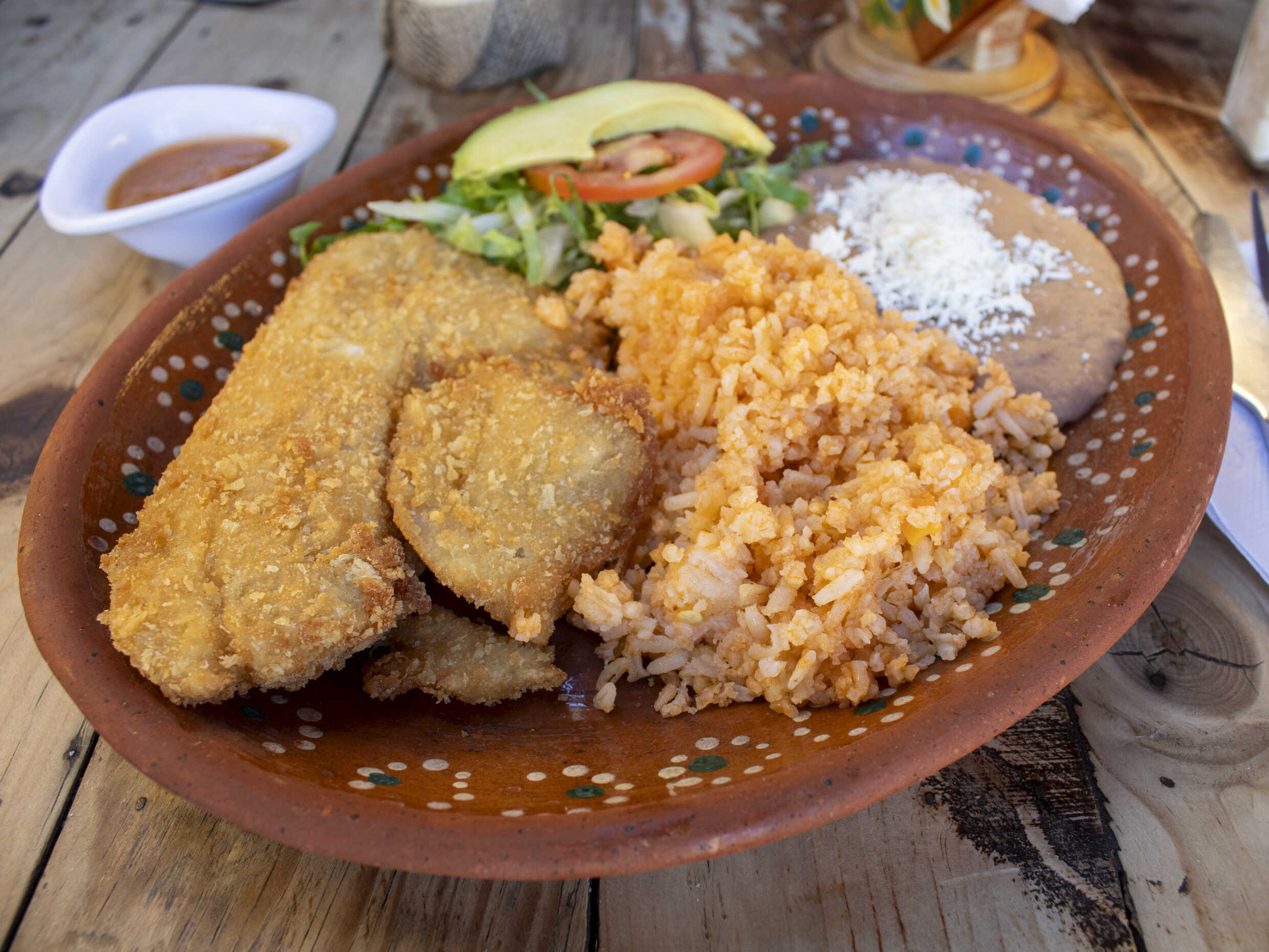 Opción de empanizado, a la plancha, al ajillo y al mojo de ajo. Guarnición de arroz , frijol, papas salteadas y ensalada (incluye tortillas y salsa picante).