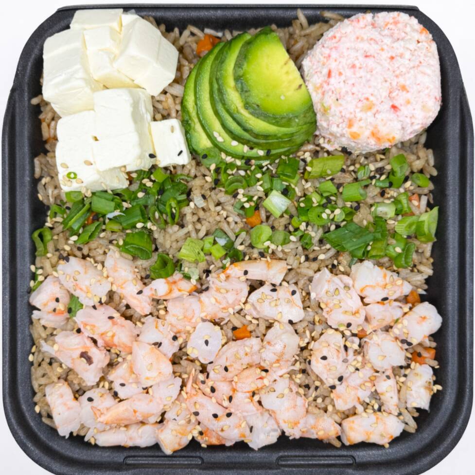 CAMA DE ARROZ YAKIMESHI, TAMPICO, AGUACATE, CEBOLLÍN, QUESO CREMA, AJONJOLÍ Y ACOMPAÑADO DE EXQUISITOS Y JUGOSOS CAMARONES. IDEAL PARA QUIENES BUSCAN UNA TEXTURA MÁS CREMOSA Y LLENA DE SABOR.