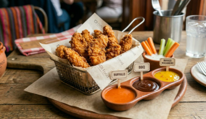 ACOMPAÑADO DE PAPAS A LA FRANCESA Y ADEREZO RANCH