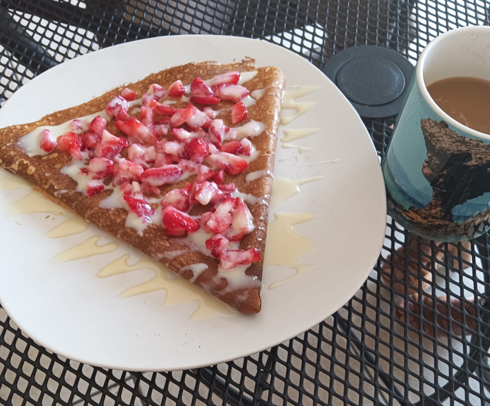 Deliciosa Crepa rellena de Philadelphia, fresa y lechera.