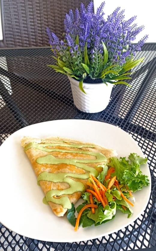 Deliciosa Crepa rellena de Espinaca, queso y champiñón.