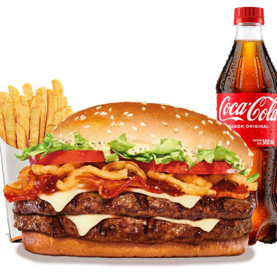 Doble carne de res, doble queso amarillo, Tocino, Lechuga, tomate, cebolla, Aguacate.