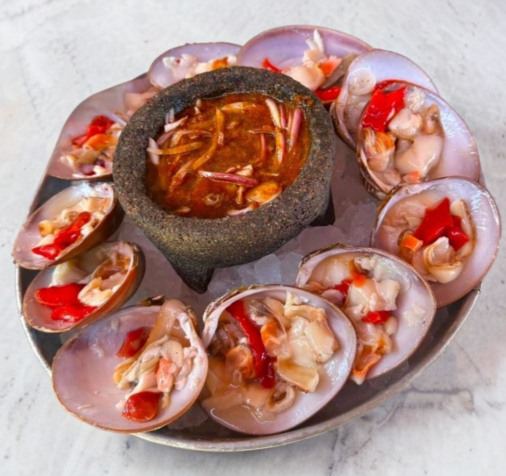 callo de hacha con salsa de la casa, pepino, cebolla, aguacate y un poco de chiltepin