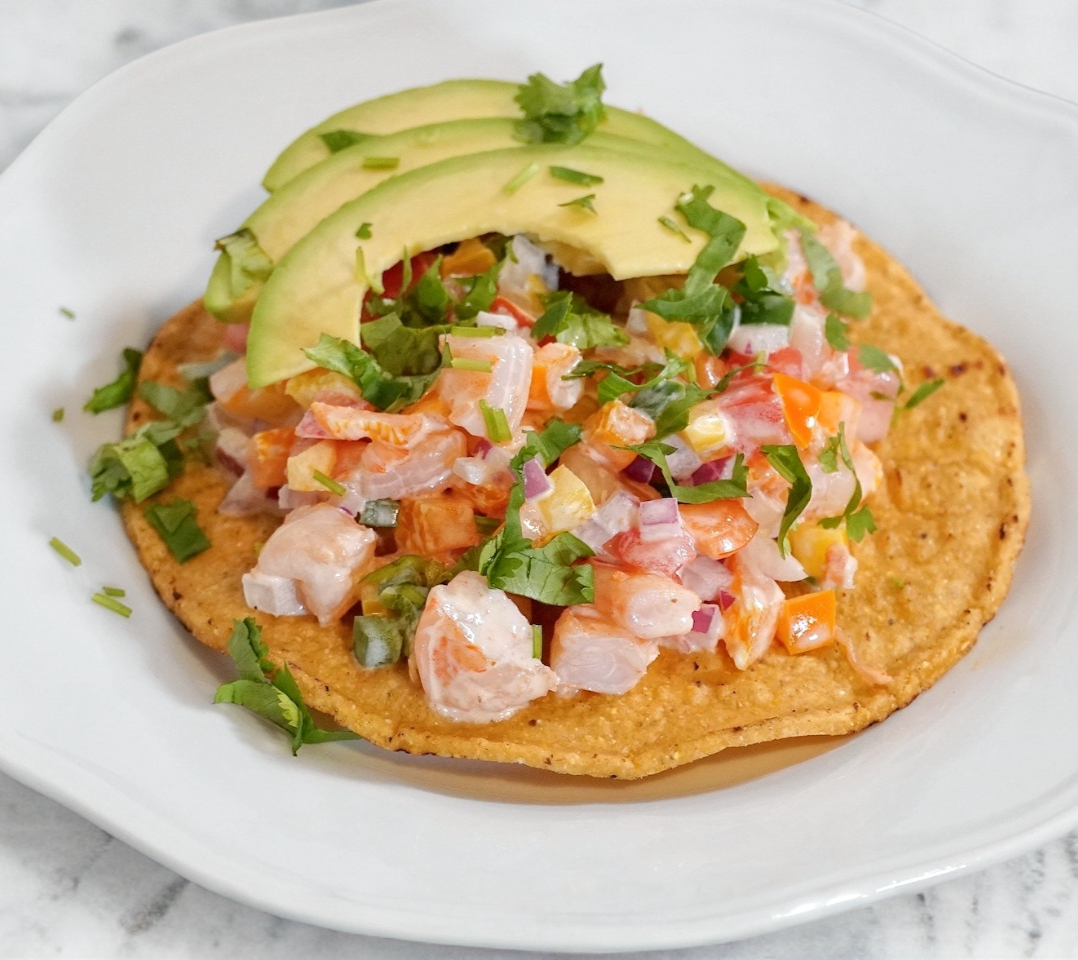 tostada de ceviche de camaron