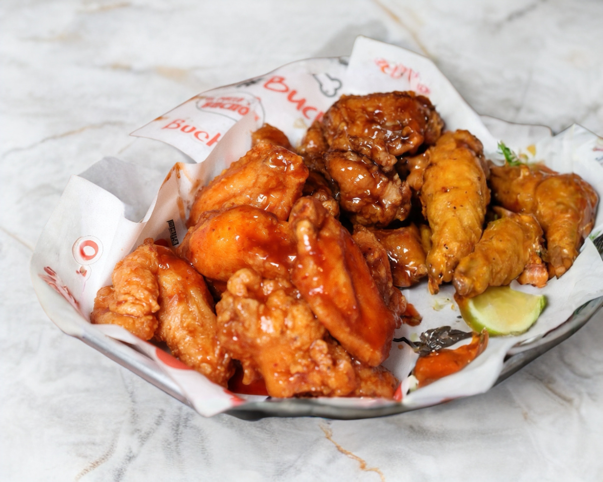 Bañados en tu salsa favorita incluye 1 acompañamiento y ranch.