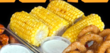 Papas fritas preparadas con boneless de pollo bañados en tu salsa favorita, jalapeño con queso crema, elote y 4 aros de cebolla .