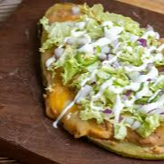 Penca de nopal a la planchas con pechuga de pollo a la plancha , frijol de la olla, lechuga rallada , cebolla , queso cotija y salsa verde.