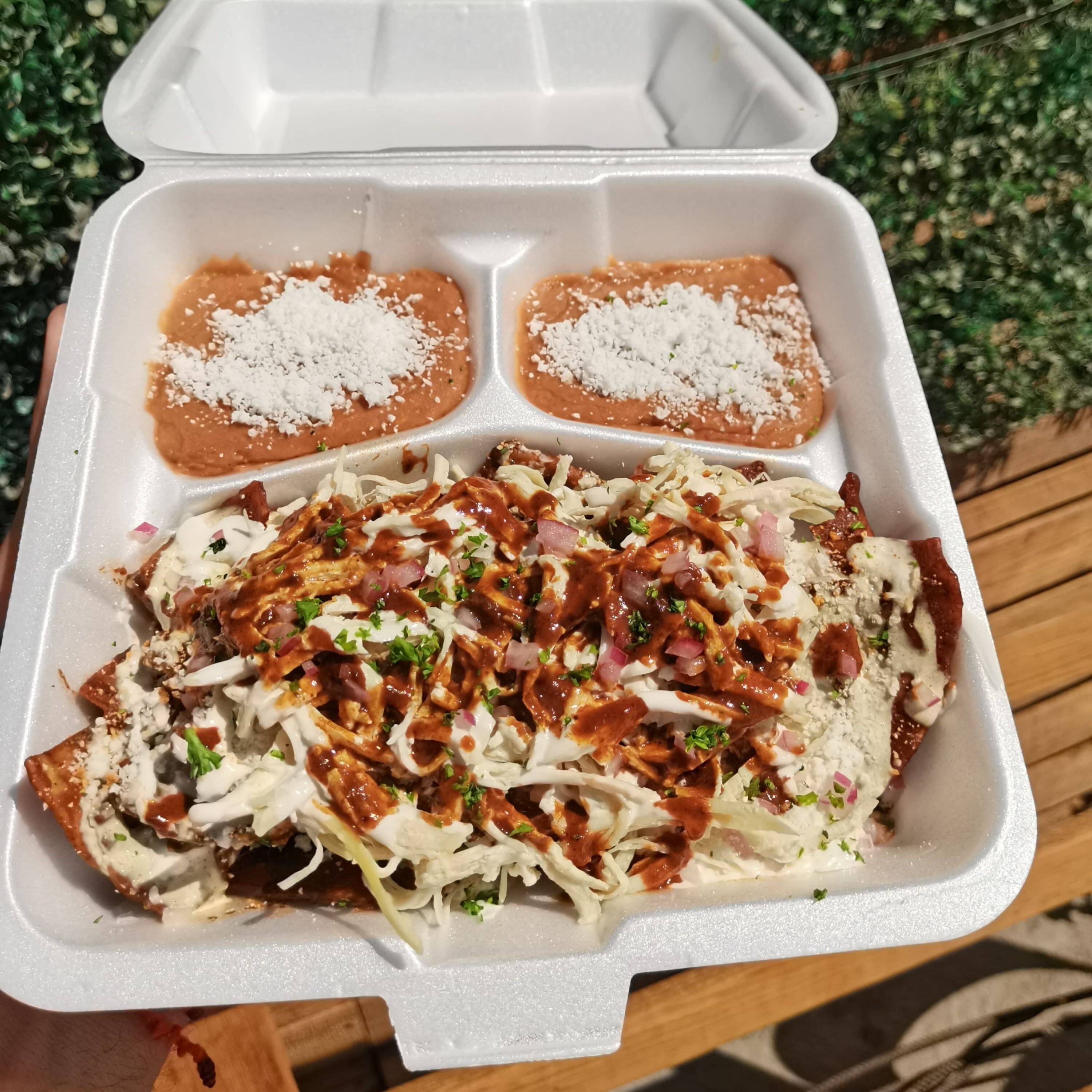 chilaquiles con pollo (rojos o verdes).