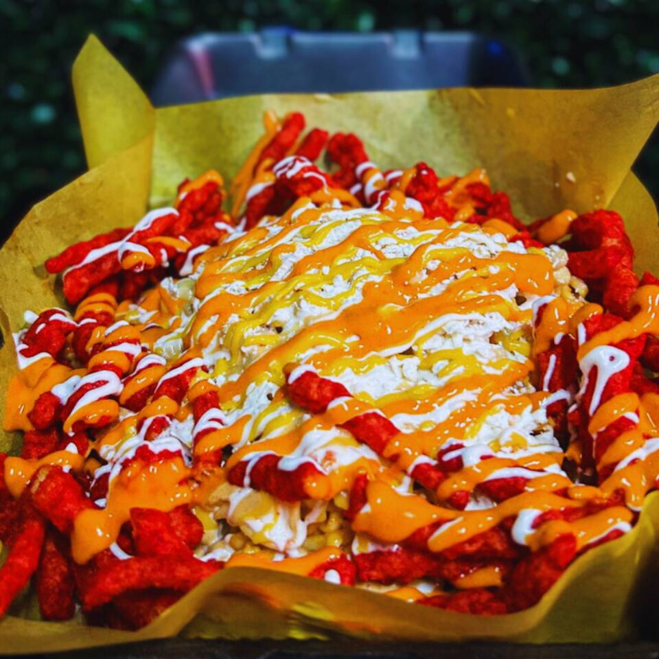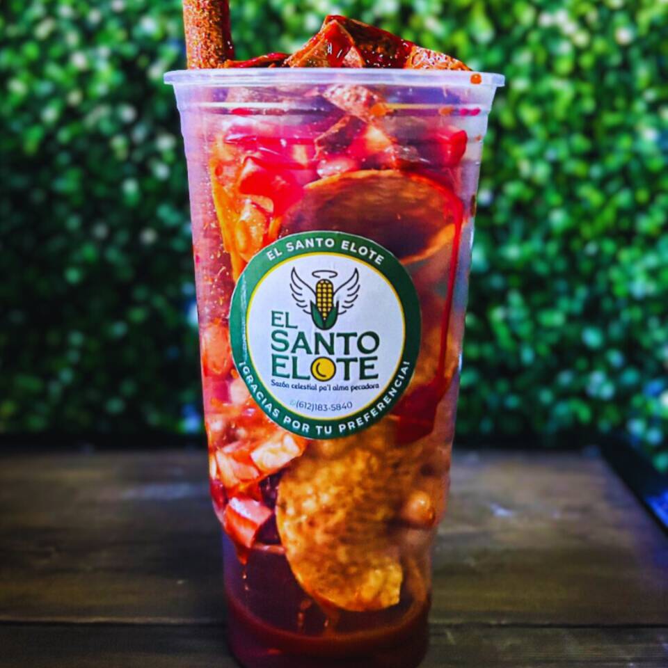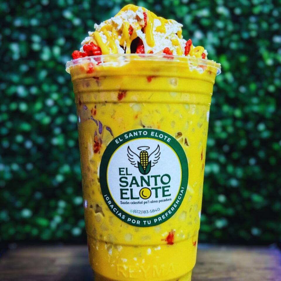 Un vaso de litro bañado en queso amarillo derretido, con capas de elote preparado y Cheetos Flamin’ Hot, coronado con más Cheetos, nuestros aderezos, queso cotija y queso amarillo derretido… ¡una explosión de sabor que te dejará sin palabras!