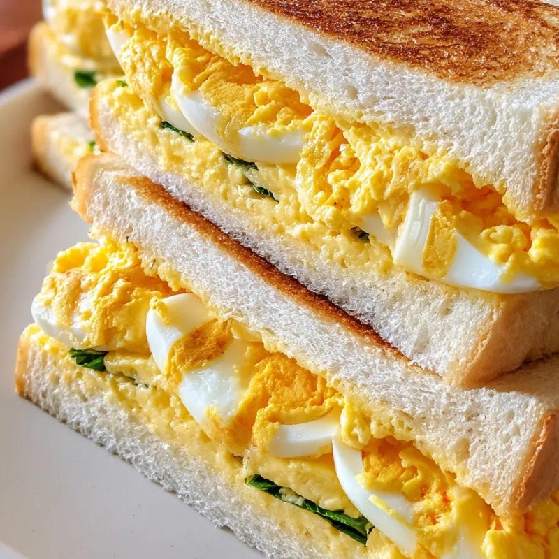 Sandwich en pan de mantequilla con huevo, queso gratinado, jamón