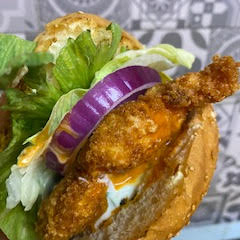 Pechuga crispy, tomate, cebolla, lechuga, salsa bufalo y ranch. Acompañado de papas fritas