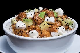 Arroz frito con zanahoria, calabacita y tocino acompañado de philadelphia, tampico, aguacate y proteína a elegir res, pollo, camarón o mixto, bañado en salsa de anguila y furikake.