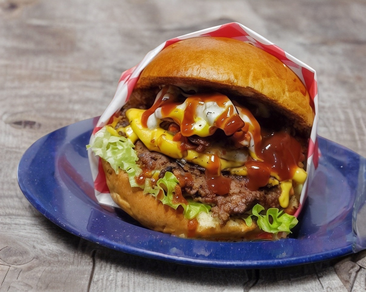 150 gramos de carne, tocino, queso amarillo, salchicha polaca + bases y salsa de su eleccion