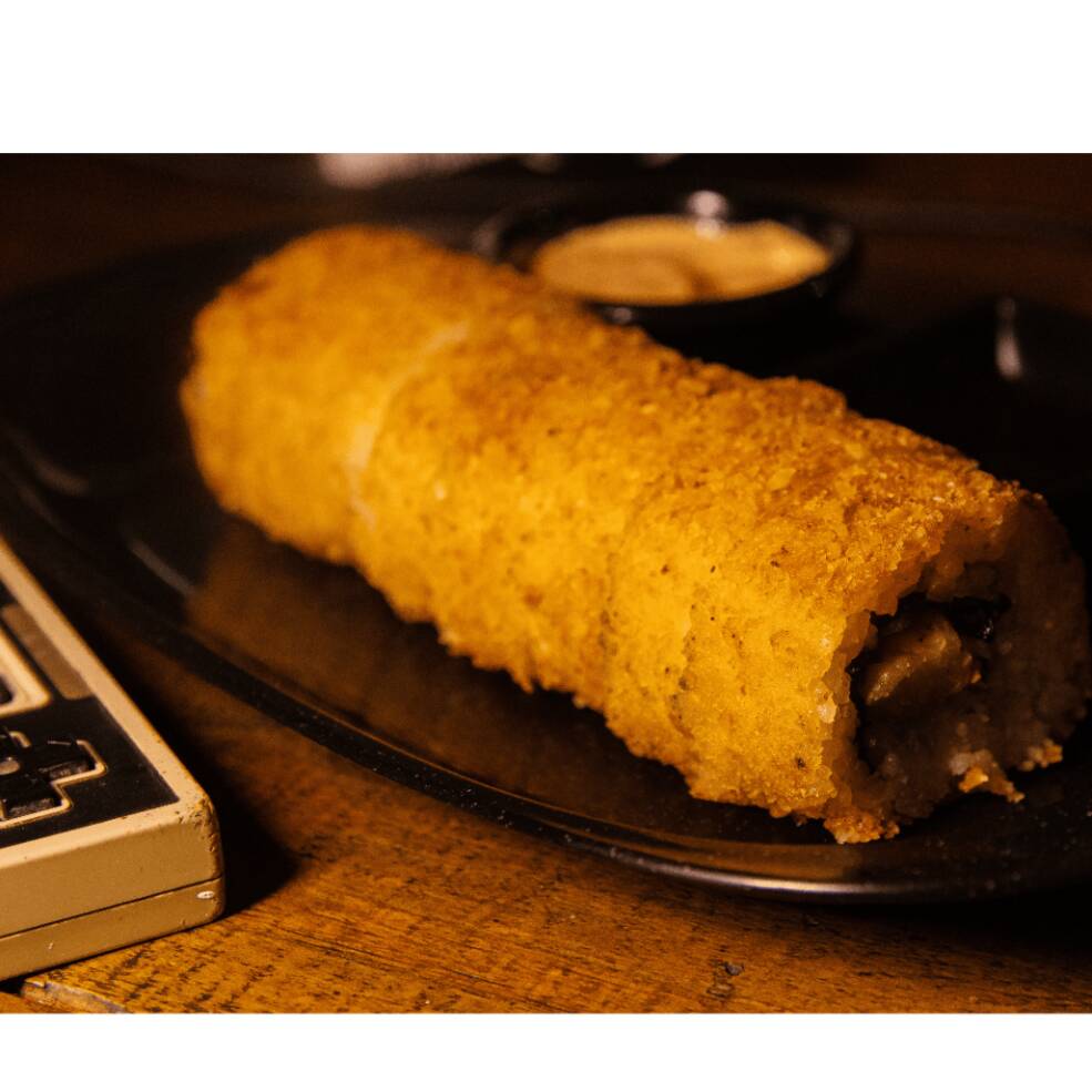 papas a la francesa, queso cheddar calientito arriba y encima boneles partidos con la salsa de tu eleccion