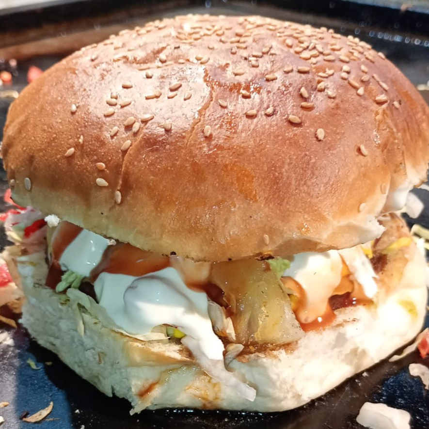 Carne molida de la mejor calidad, piña en trocitos bañada con salsa teriyaki, jamón, queso amarillo, lechuga, tomate, cebolla, salsa, crema, catsup y mostaza.(incluye un chilito toreado)