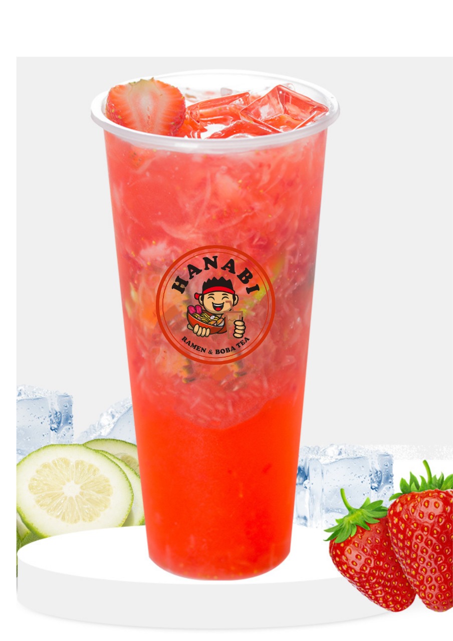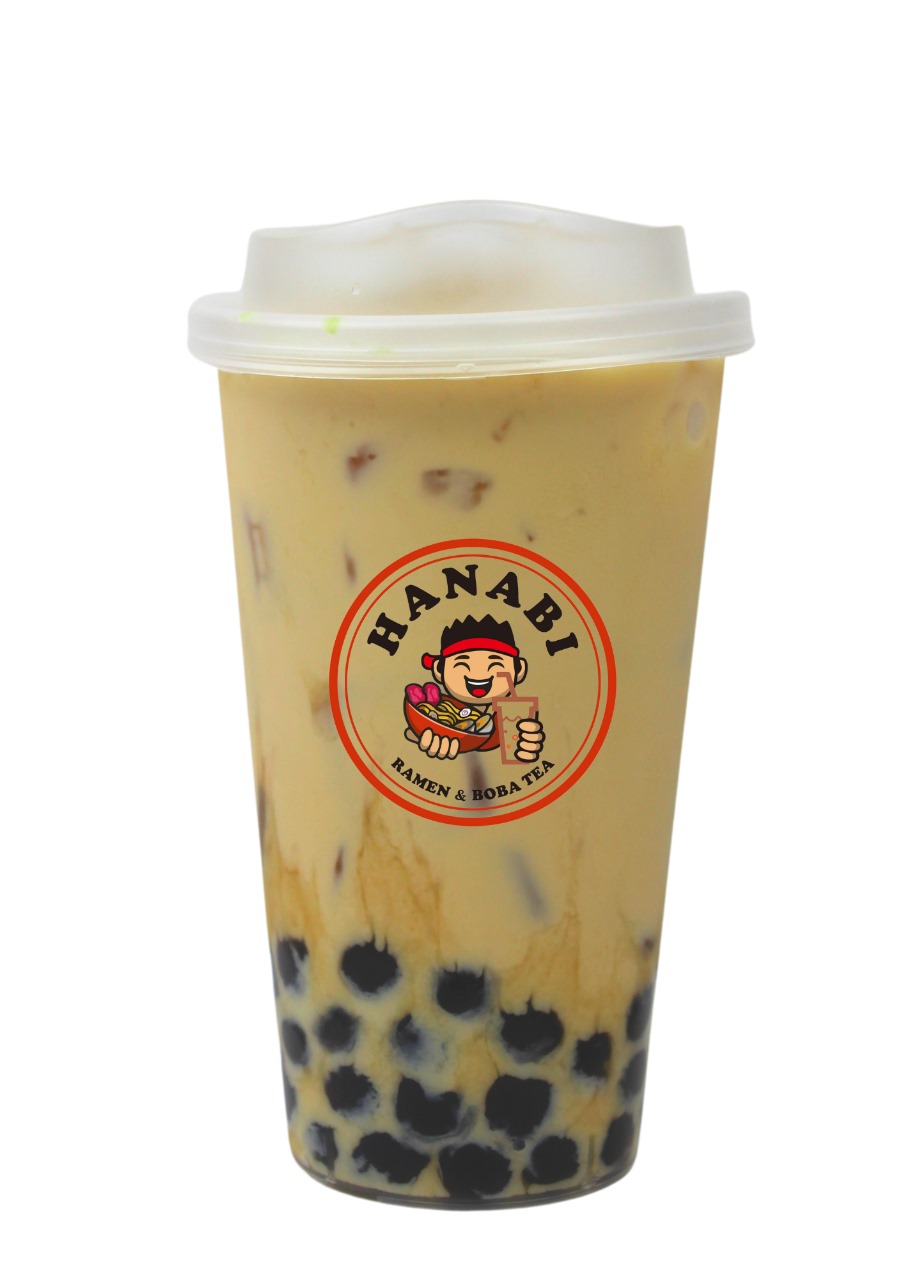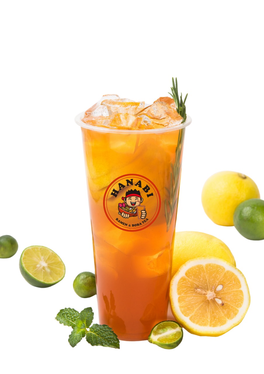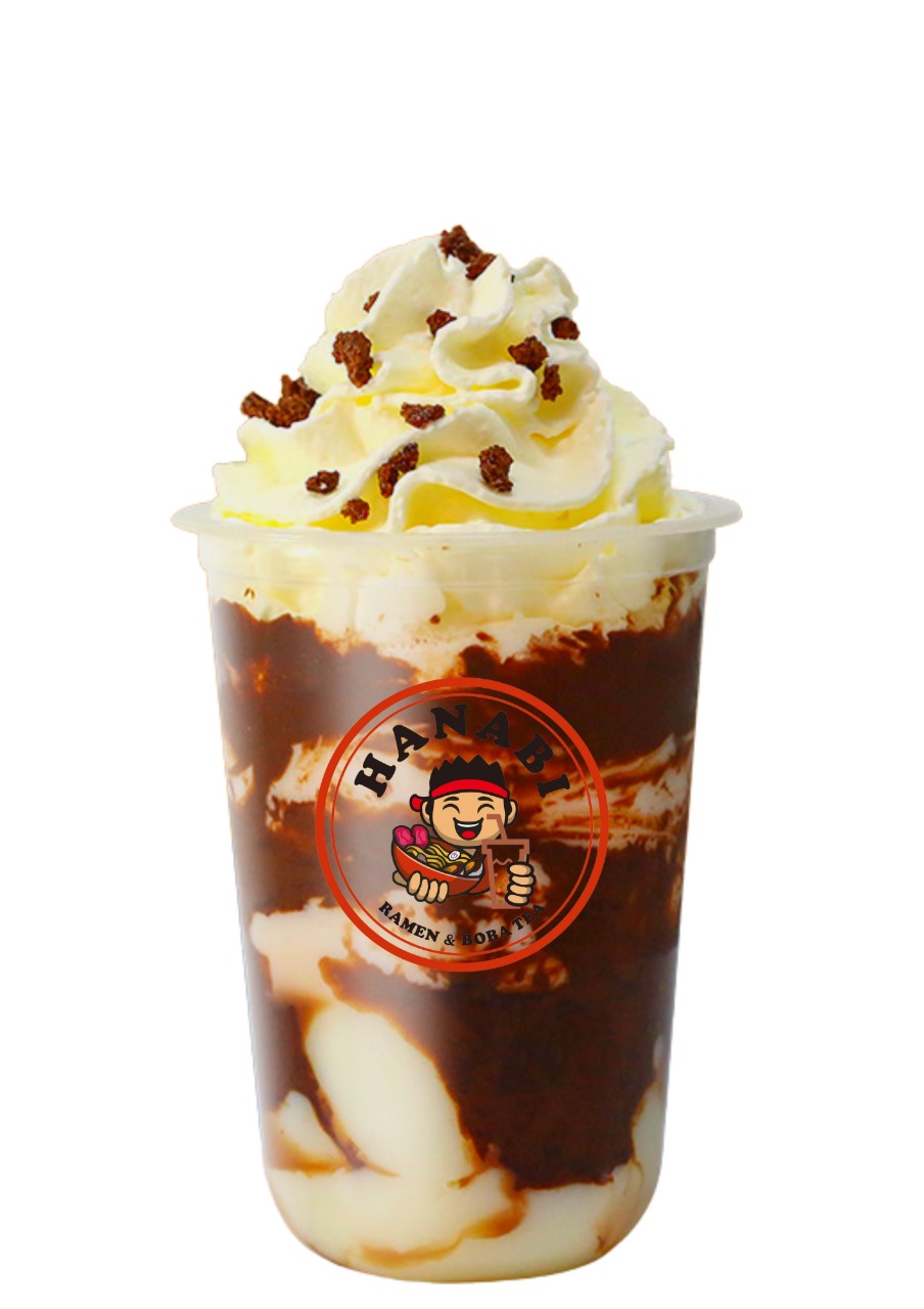 Bebida estilo frappé, elaborado con té y extracto de naranja, con topping de gelatina de té y cristal boba.