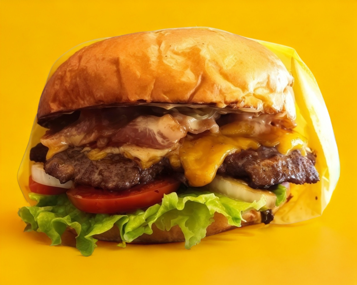BOLLO BRIOCHE ARTESANAL, SIRLOIN 145GR, QUESO CHEDDAR, TOCINO, LECHUGA, TOMATE, CEBOLLA, PEPINILLOS Y MAYONESA DE LA CASA.