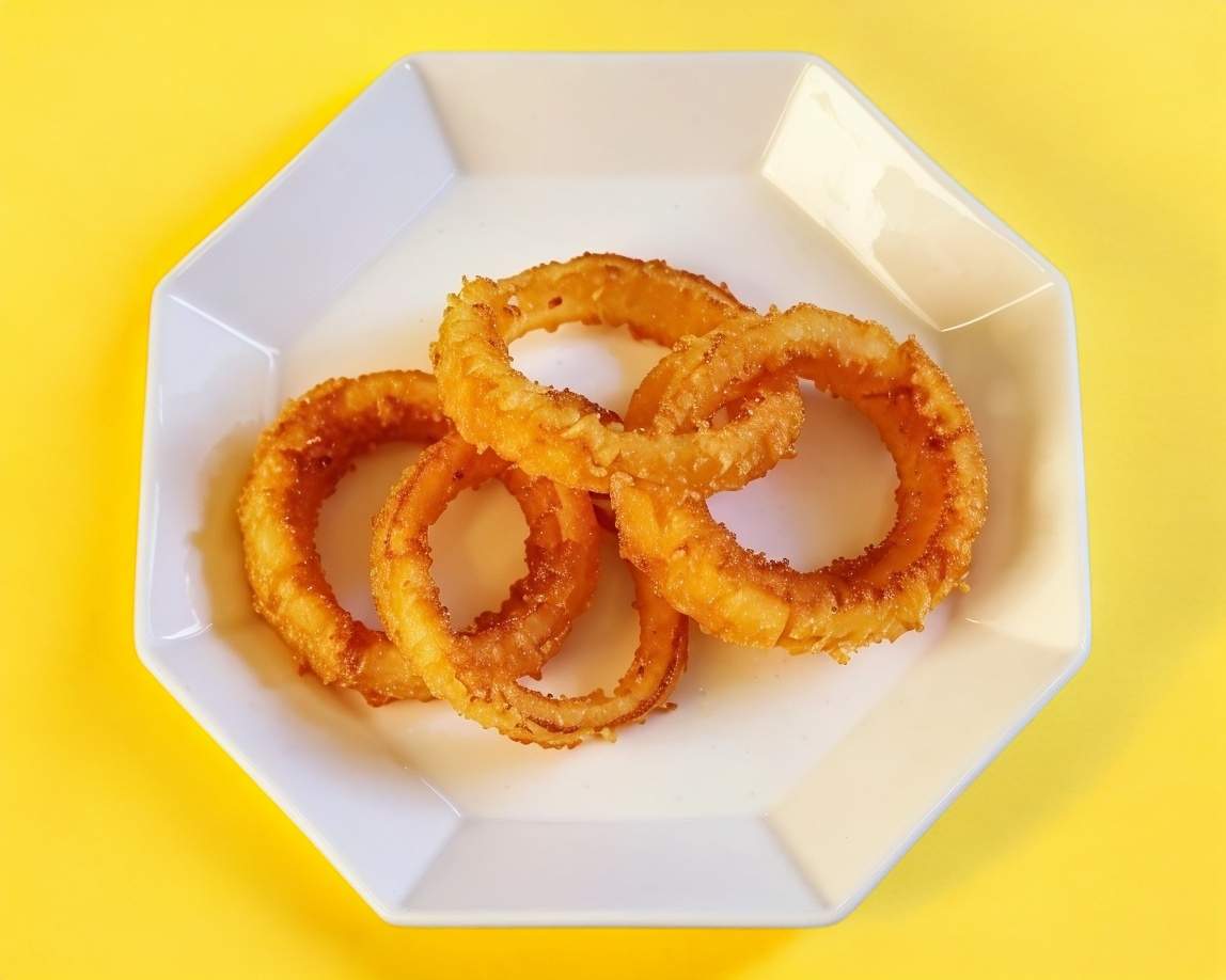 DELICIOSOS AROS DE CEBOLLA SUPER CRUNCHYS HECHOS EN CASA 200 GR, ACOMPAÑADOS DE UNA PORCIÓN DE SALSA BBQ.