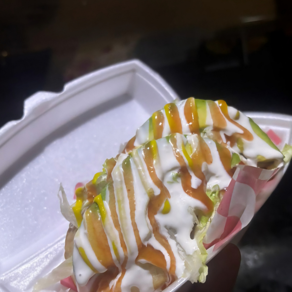 Delicioso súper burro, con carne de la mejor calidad asada o deshebrada, lechuga, tomate, cebolla, aguacate, salsa de jalapeño, mostaza, crema y kétchup.