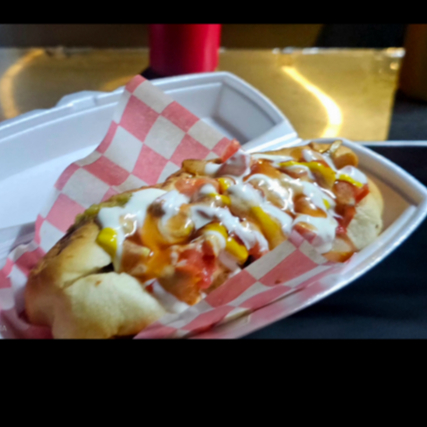 Delicioso hotdog paceño especial con pan suave, salchicha Longmont, carne asada o deshebrada, queso amarillo, salsa de jalapeño, lechuga, cebolla, tomate, aguacate, mostaza, crema y kétchup.