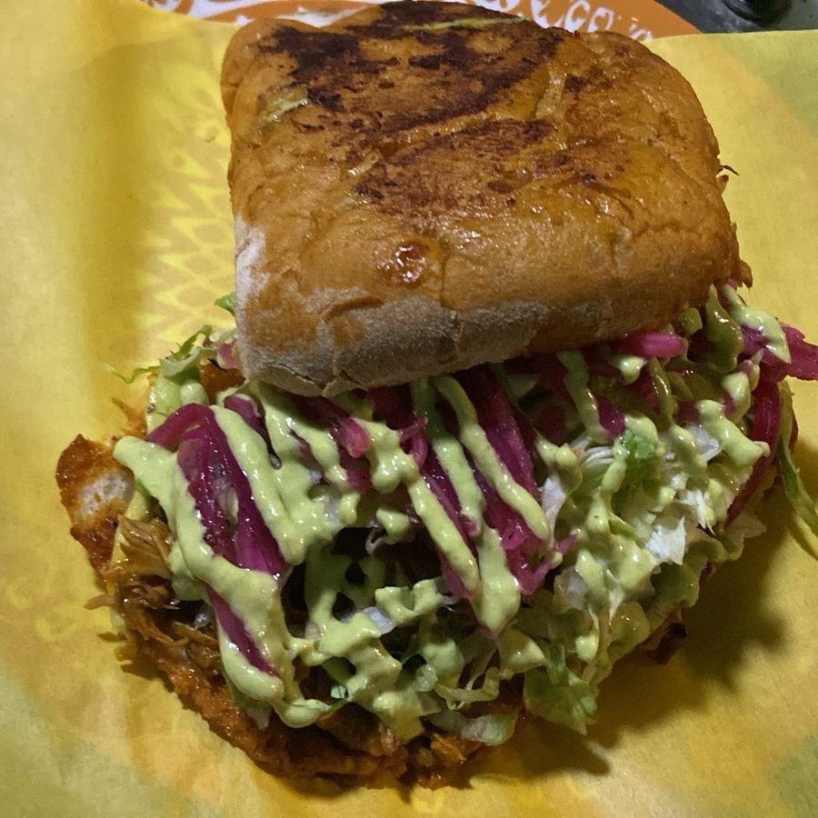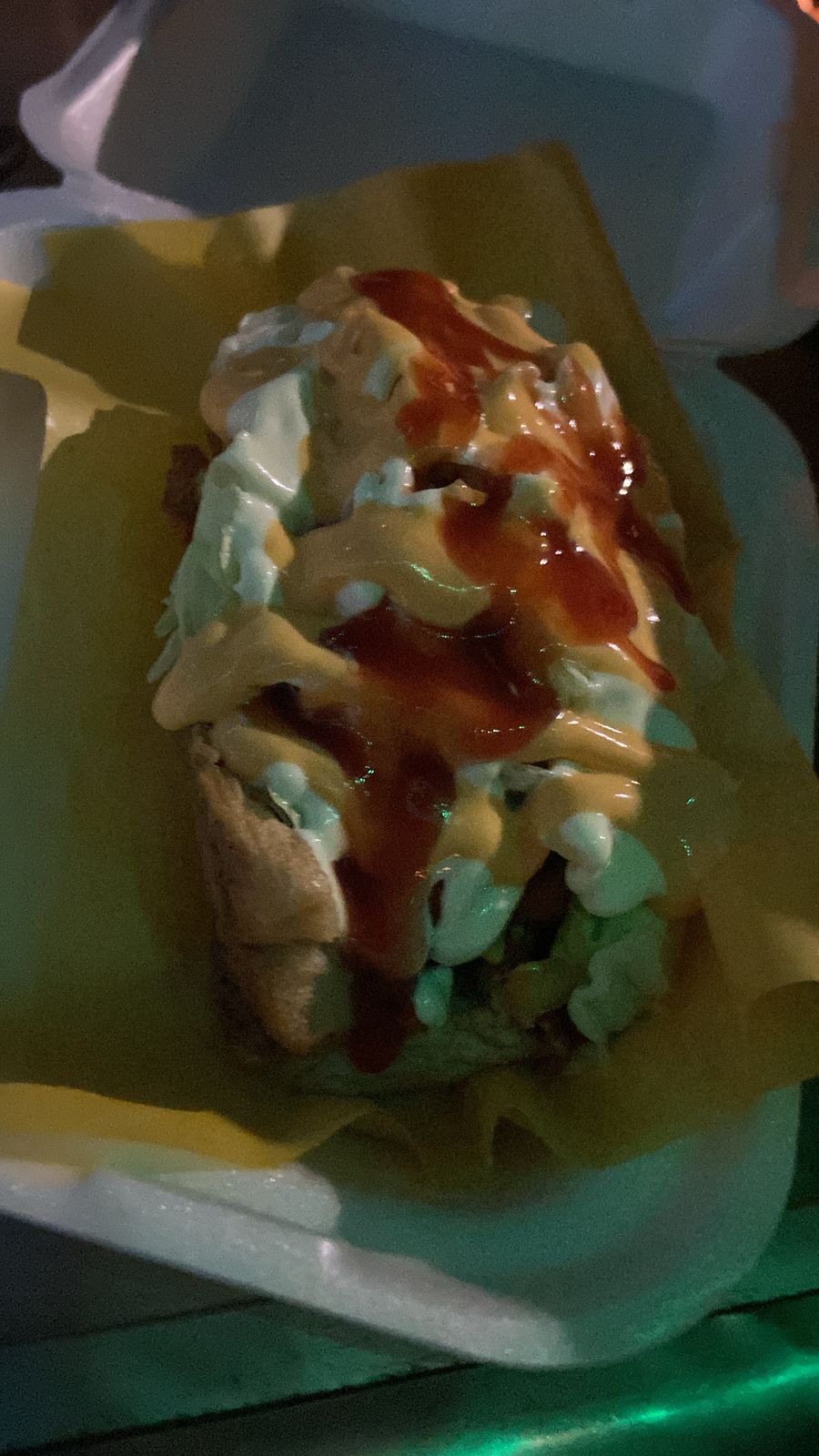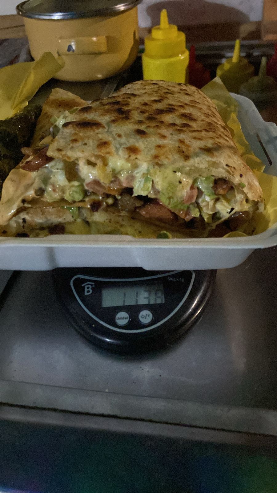 tortilla carne pastor lechuga aguacate tomate salsa mostaza crema y catsup