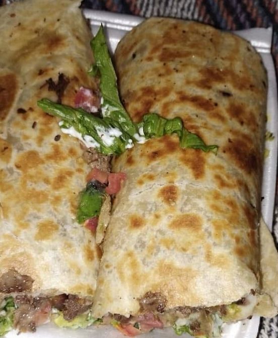 tortilla de harina de 3 bolas queso menonita carne asada carne pastor salchichas lechuga aguacate tomate salsa mostaza crema y catsup