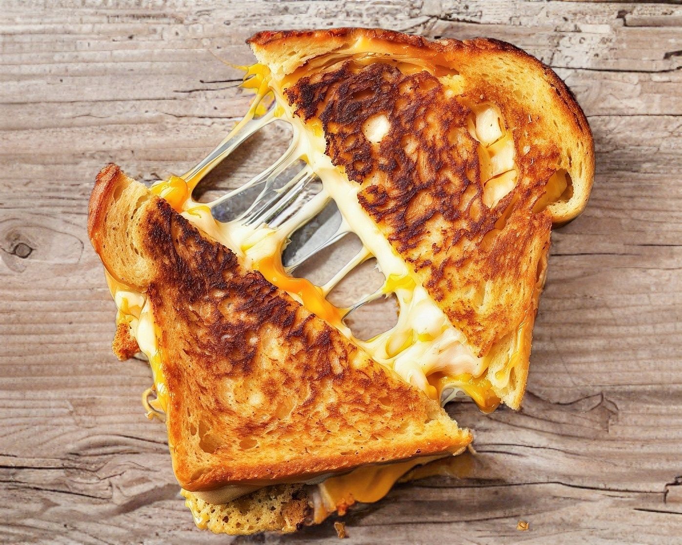 Sándwich de queso con mezcla de gouda, manchego, cheddar y parmesano, pan e molde dorado a la plancha, con toque de mantequilla de ajo y romero y aderezo de la casa (acompañada de papas provenzal)