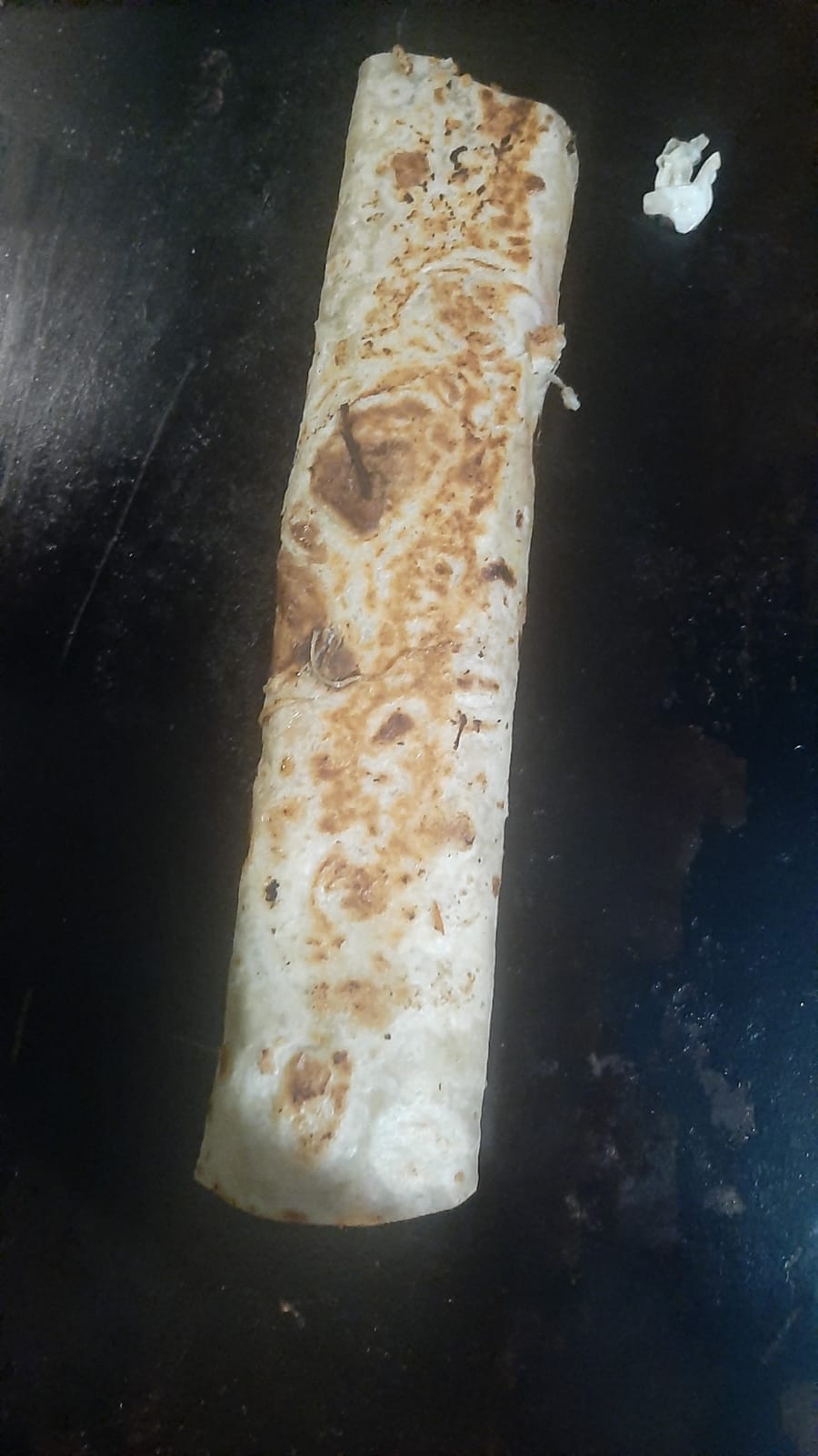 Rica tortilla de harina grande, acompañada de carne deshebrada, cebolla, tomate, aguacate, lechuga, crema, catsup, mostaza y chile.