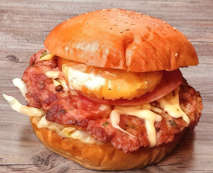 Pan, Salchicha rellena de queso blanco, cubierta en carne molida y envuelta en tocino, verdura y aderezos