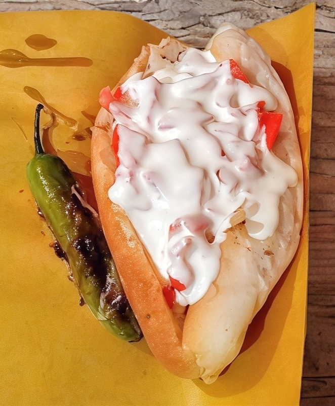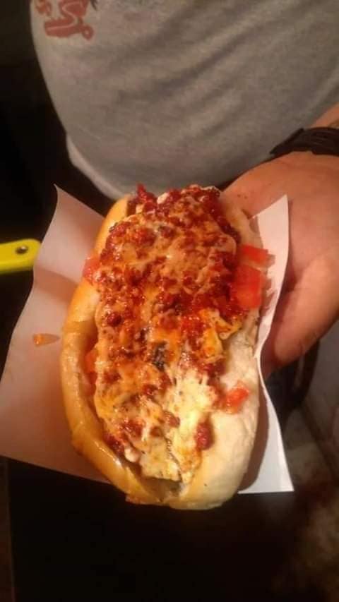 Salchicha c/tocino, chile,mostaza, crema, catsup,cebolla(cruda o asada) y tomate. Favor de especificar en la caja de comentarios como lo quieren