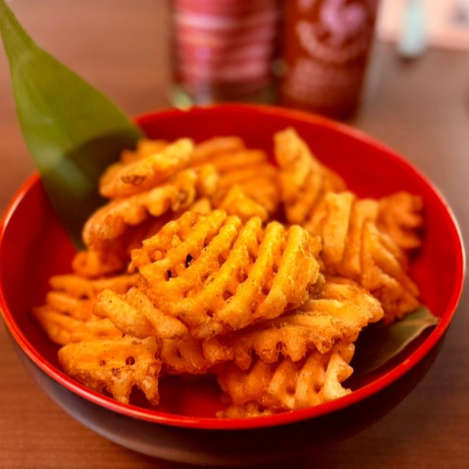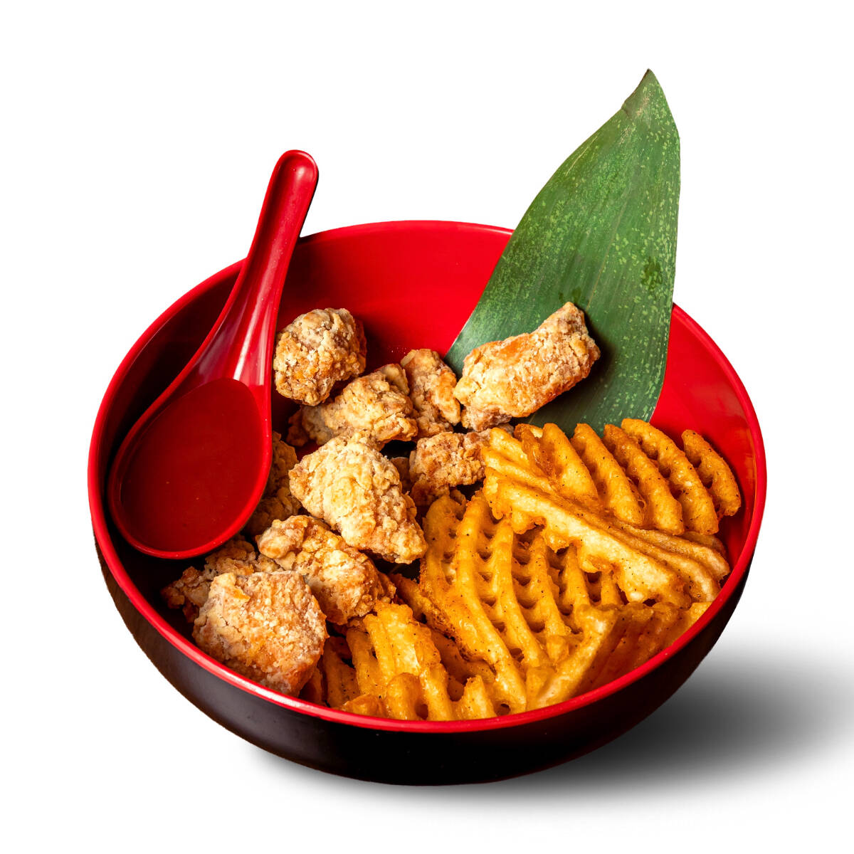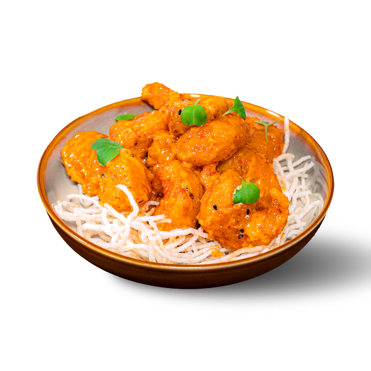 Capeados bañados en salsa spicy de tu elección sobre una cama de fideo crispy.