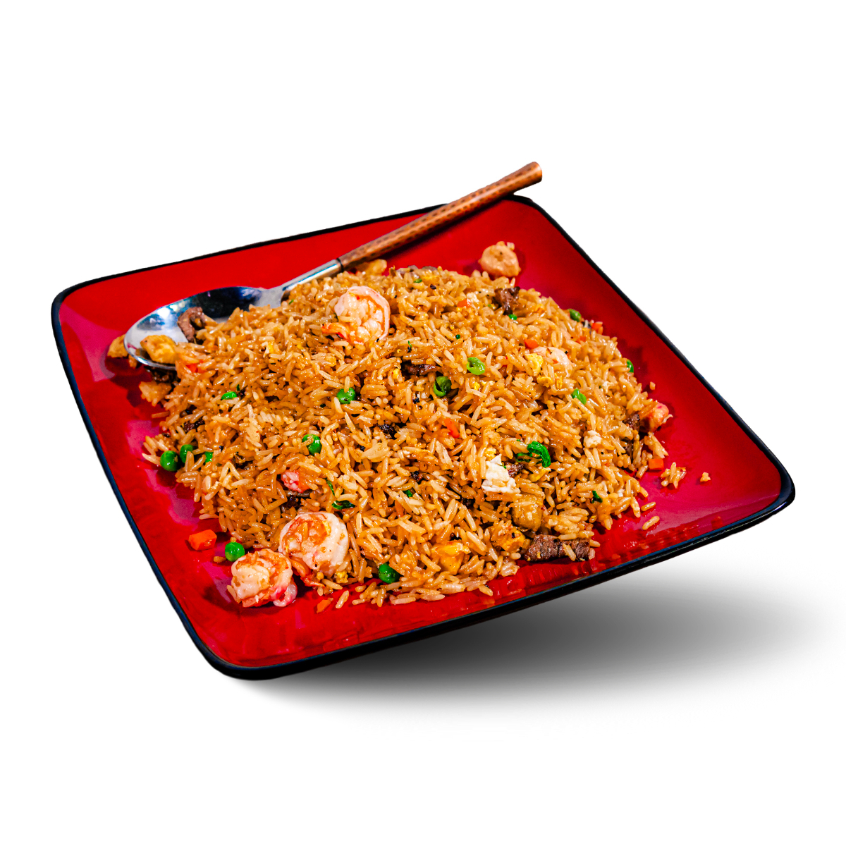 Arroz frito clásico con huevo, verduras y proteína a elegir.